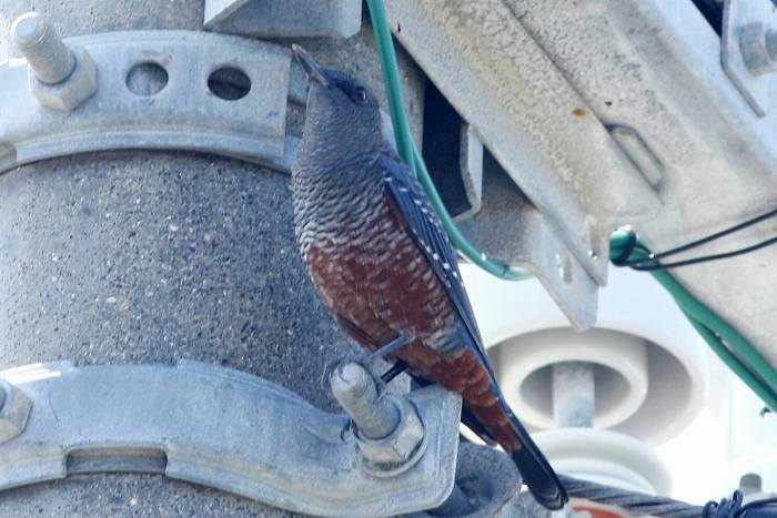 イソヒヨドリ♀は、ソングポストに現れて囀る?こともあります。♂が多忙で来ら