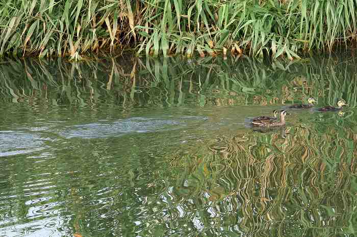 写真「052」から約3秒後です。左2羽の姿が消え、残るは波紋だけです。「完