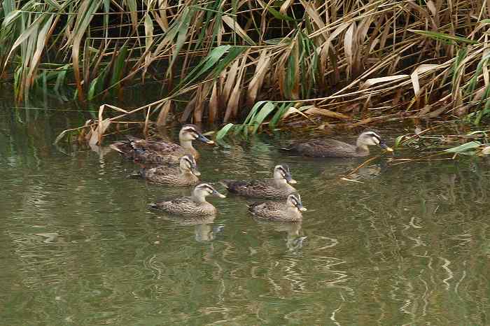 この画の左奥は成鳥、他は窓外水域の上流で今年生まれた若鳥だと思いま