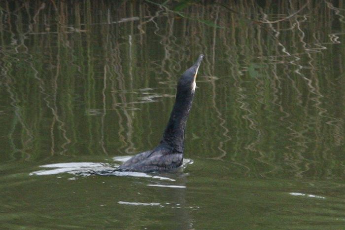 2008年 カワウ 029 戻る 撮影(06/02) 最終段階では、上を向いて歩こう、です。 頸の所から腹の方にウナギを下ろそうとしているのだろうと考えます。暫くはこ ういう姿勢を保ちながら泳ぎます。 ウナギ物語を終わります。 (Canon) EOS 40D EF 300mm F4L IS USM