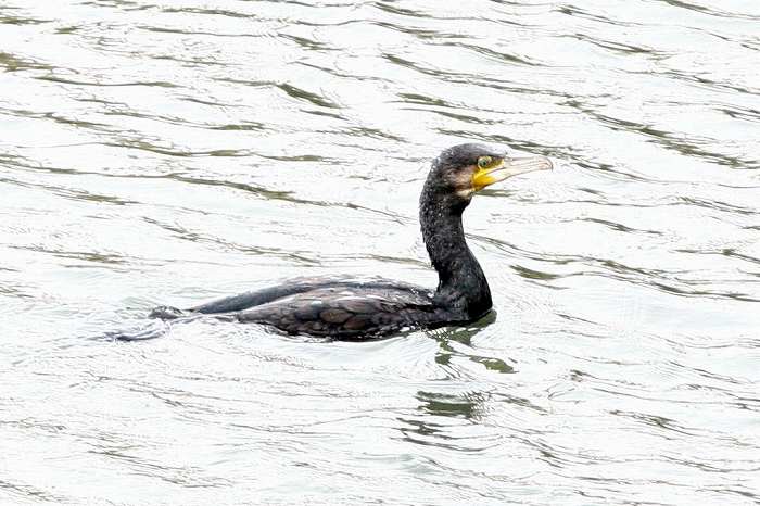 9月にたった一羽でやって来て、頑張っているカワウです。体が少し小さいです