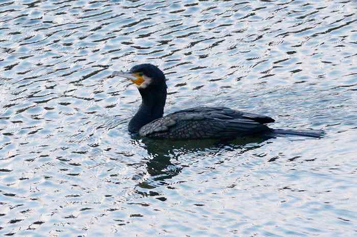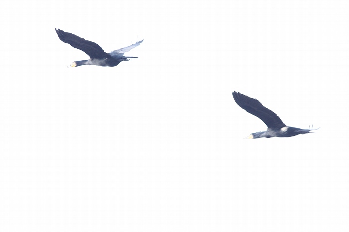 婚姻色が見られる飛翔しているカワウを撮ったのですが、露出に失敗して、まず