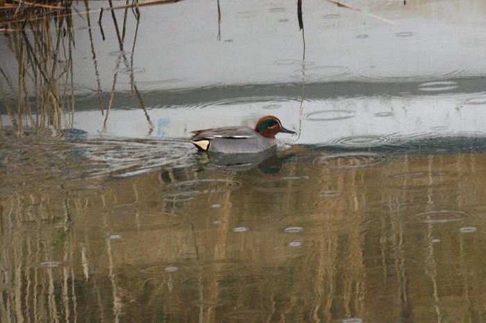 コガモ♂です。このところ単独行動をしています。夜になっても群の所に帰りま