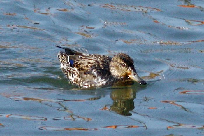 2008年 コガモ 028 戻る 撮影(03/17) コガモ♀の嘴は黒いですが、陽光の反射でこんな色になっています。問題は 嘴の基部です。参考書には、わずかに黄色味があると書かれていますが、これ は褐色という感じです。しかし川面を見ますと対岸の褐色の物体が写っています ので、嘴もその影響を受けているのでしょうか。 (Canon) EOS 40D EF 300mm F4L IS USM + EXTENDER EF 1.4X II