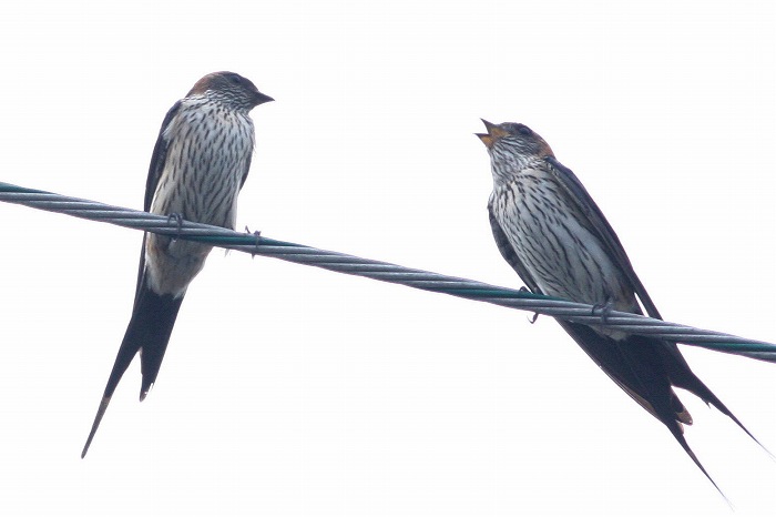 6日朝はコシアカツバメ数羽が飛び回り、電線にとまりましたが、その中の2羽