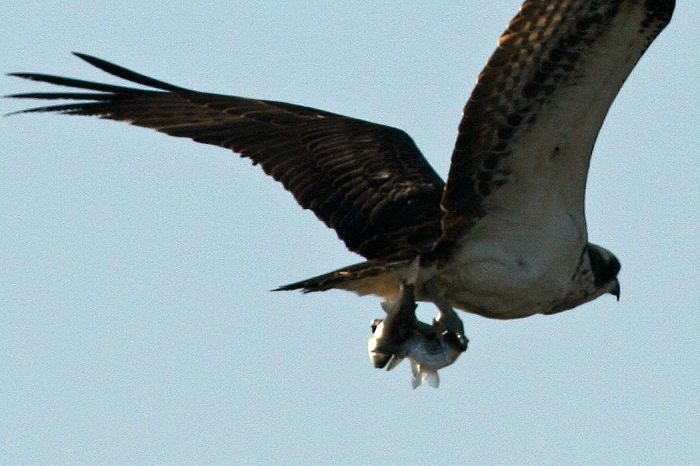 2008年 ミサゴ 003 戻る 撮影(01/06) 鳥の参考書にしている本の中に、同時に2匹の魚を捕獲して飛んでいる写真 があり、よし、私もやるぞ、と決めて狙い続けてから幾年月やら。ついにやりま した。やれやれです。 (Canon) EOS Kiss Digital X EF 300mm F4L IS USM