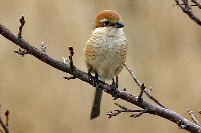 2008年 モズ 003 戻る 撮影(03/02) ♀の特徴は、眼の前の黒い場所が黒味が薄く、後ろの方は褐色です。最も大 きな特徴は、下面(脇、胸、腹)に茶色の波状横斑があることのようです。 参考書 : 『日本の野鳥590』 「平凡社」 参考書 : 『日本の野鳥』 「山と渓谷社」 (Canon) EOS 40D EF 300mm F4L IS USM
