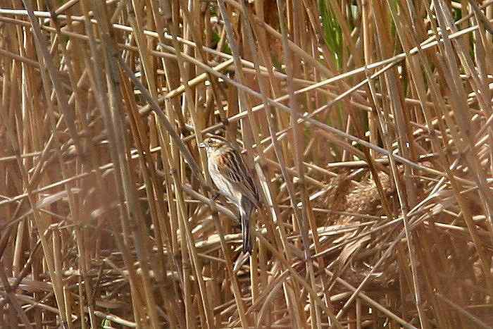 2008年 オオジュリン 015 戻る 撮影(04/01) 葦に止まって動いている鳥の数は減りました。小雨覆が赤褐色です。 (Canon) EOS 40D EF 300mm f/4L IS USM + EXTENDER EF 1.4X II