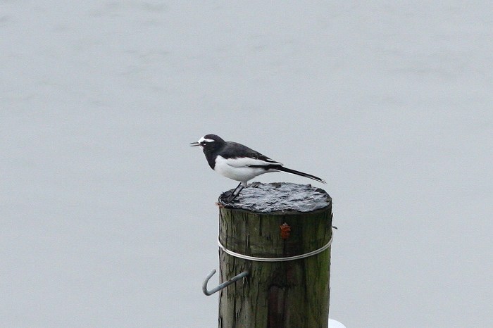 2008年 セグロセキレイ 014 戻る 撮影(09/21) 斜めの板を上った後、このように棒の上に立ち、一声二声鳴いて、すぐに飛び 降りおます。 続きます。 (Canon) EOS 40D EF 300mm F4L IS USM