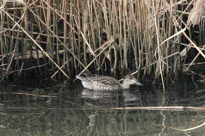 こういう画を見ますと、コガモなどの小型水鳥♀ではなかろうかと悩みます。次