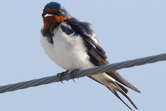 このツバメはご覧のように、とまっている時は翼の上に白い羽が被さっている