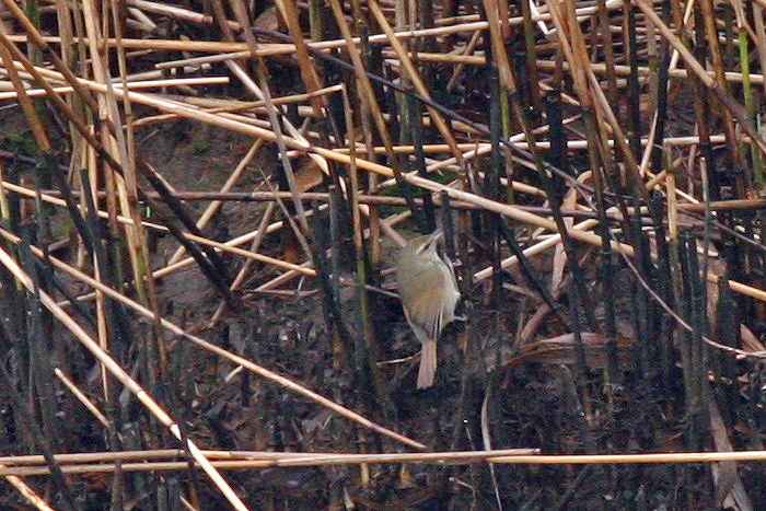 2008年 ウグイス 004 戻る 撮影(03/10) 葦原で楽しそうに遊んでいます。 やがて山の方へ行って、鳴き方が上手になれば、ホーホケキョ、などと鳴きま すが、それまでは無茶苦茶鳴きです。 (Canon) EOS 40D EF 400mm F5.6L USM