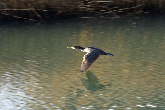 流し撮りの見事な失敗作ですが、ウミウが連日のようにやって来て、幼鳥で、