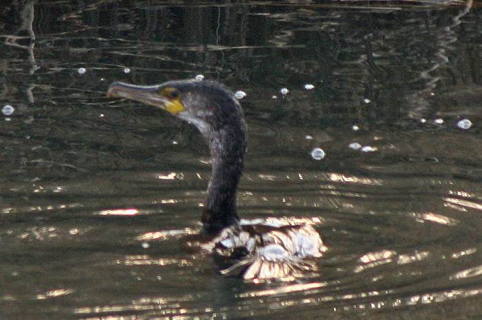 カワウとウミウはそっくりさんで判別が面倒ですが、慣れてくると、潜った後の波