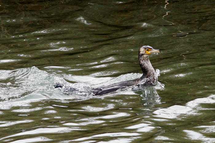 ウミウが泳いでいる時は、体がほとんど水に沈んでいますが、この場合は、水