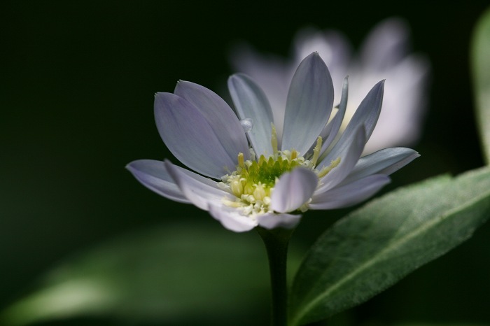 少しピンクがかった白いミヤコワスレです。