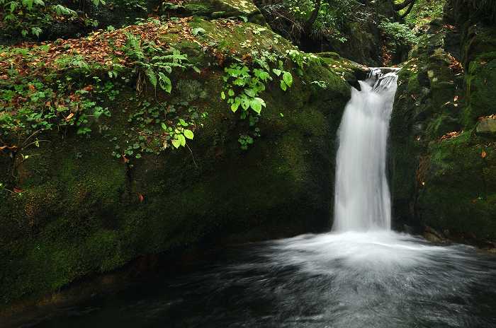 大きな滝ではありませんし、雄壮でもありませんが、滝壺の側の大きな岩に座っ