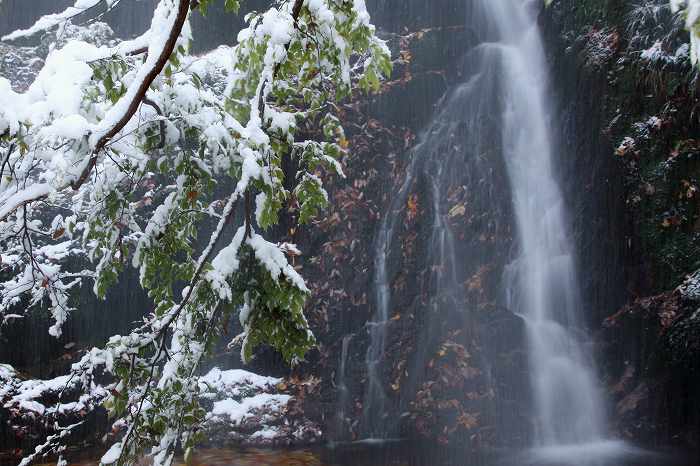 初雪だ、それっ! と滝撮り友人と勇んで出かけたのはいいのですが、白い雪