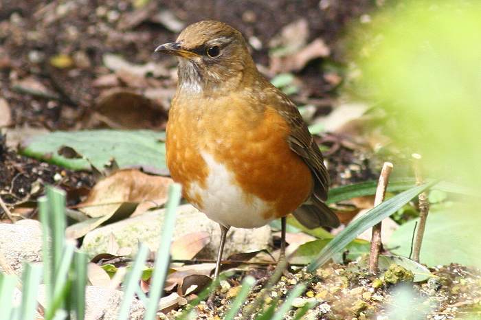 マミチャジナイという鳥が似ていて、白い眉斑があり、アカハラには眉斑は無いとの