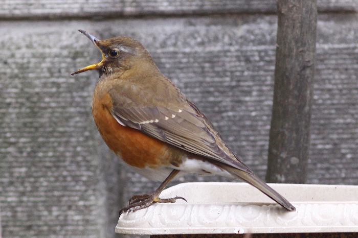 シジュウカラは近寄りません。ヒヨドリはアカハラの姿を見ると逃げます。