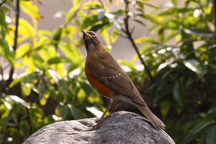 その小鳥たちより大きな鳥の場合は、ヒヨドリはアカハラの姿が在ると逃げて