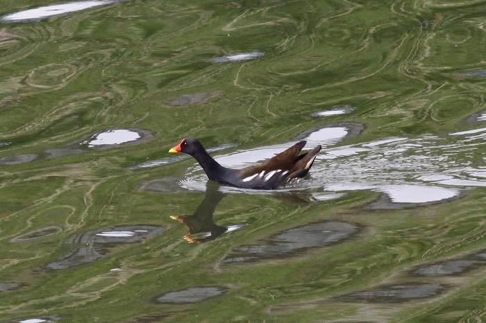 バンの成鳥は、黒い鳥ですが、上面には褐色っぽい部分があります。