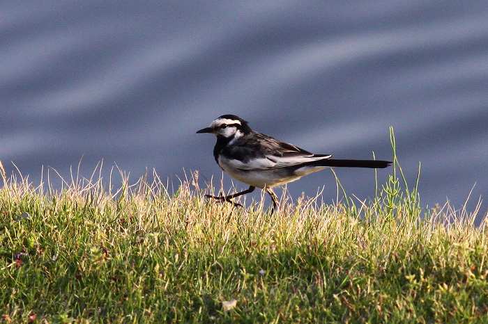 ほぼ毎日姿を見るハクセキレイです。地上が専門で、川べりや路上や、時には