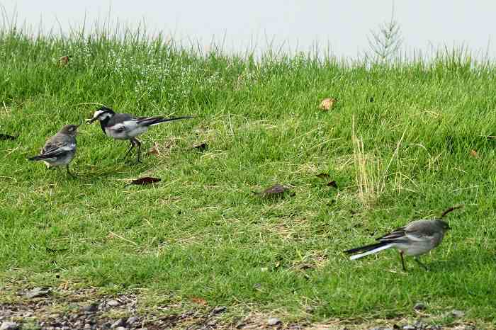 写真右下の鳥も、眼の上(眉斑)が白くハクセキレイです。左上も同じですが、