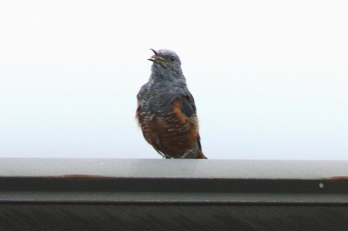 ツバメが二度目の繁殖中の様子で攻撃的になっていますが、このイソヒヨドリは