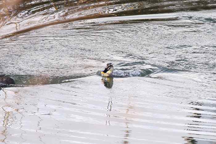 潜った♀が浮いてきました。そして♂の方を見ています。♂はと言えば、何が