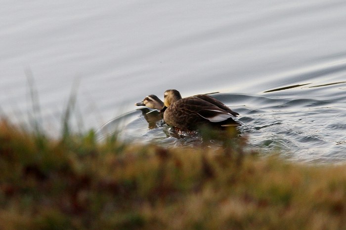 2009年 カルガモ 041 戻る 撮影(12/14) ♀の左側から上手に乗りました。 時には失敗して、再び水上に落ちることがあります。 しかし、突発的に気になる事が生じて、わざと落ちるのかも知れません。 (Canon) EOS 7D EF 300mm F4L IS USM + EXTENDER EF1.4X II