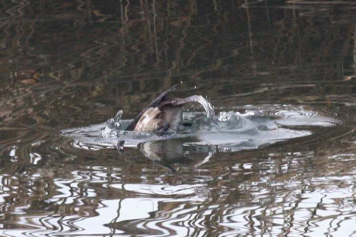 入っていきます。潜る動作のスピードは、カワウやウミウ、カルガモやコガモに