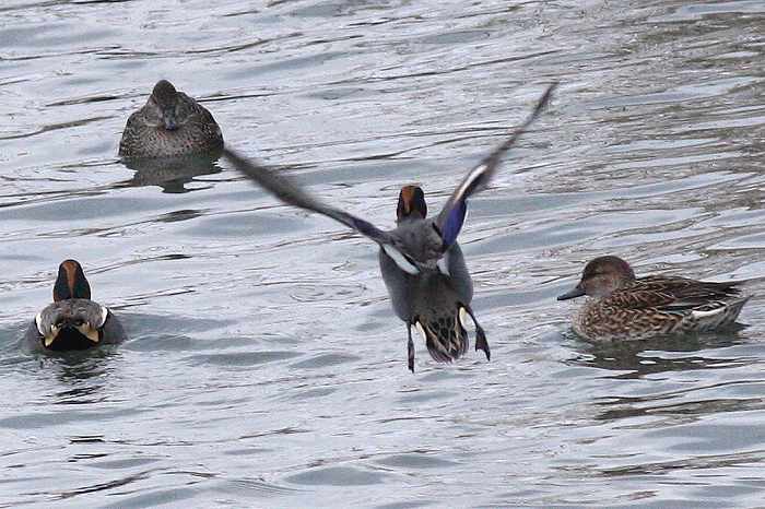 コガモも同じですが、ディスプレイの一種のつもりで羽ばたきすることもあるよ
