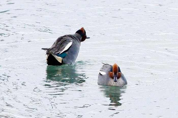 ♂は眼の周りから頸の後部にかけては緑色ですが、頭部は茶褐色(栗色)です。
