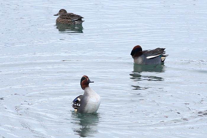 2009年 コガモ 015 目次へ 撮影(01/25) この例もディスプレイ中のポーズですが、おかっぱ頭になっていません。おかっ ぱ頭に変身するかどうかは、その時のちょっとした気分ではなかろうかと思うの ですが、もっと真剣な理由があるかも知れません。 今後の問題です。続きます。 (Canon) EOS 40D EF 300mm F4L IS USM