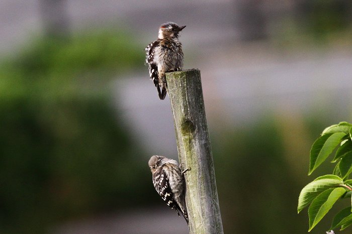 コゲラ2羽が来ました。留鳥ですから一年中見られる鳥です。キツツキの仲間