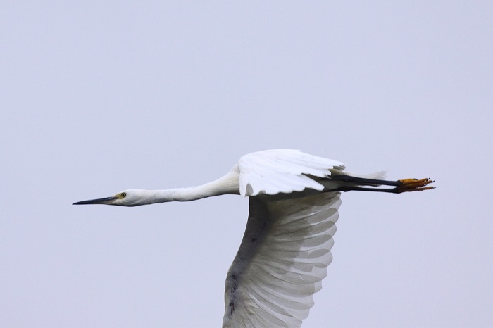 コサギは年中見られる鳥です。多くは田んぼの方向に住んでいますので、河口