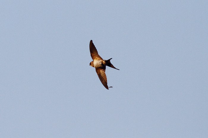 ツバメ類の姿が見られなくなりました。コシアカツバメと一緒にイワツバメが飛