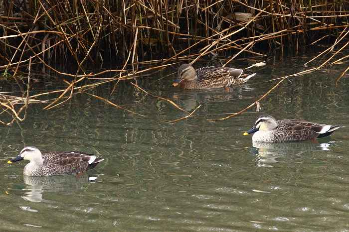 中央に写っている鳥がマガモ♀です。