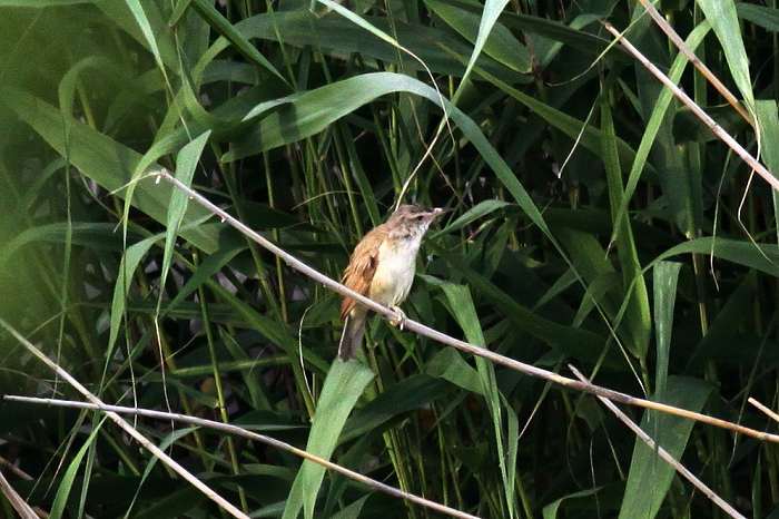 2009年 オオヨシキリ 005 戻る 撮影(07/03) 雨に濡れていますので、羽はバサバサです。側頭部は黒っぽい部分がありま す。 大きさはスズメくらいだと見ました。鳴き声は聞いていません。 喉の辺りにぐにゃぐにゃした縦斑が見られます。胸の辺りにも縦斑が少し見ら れるように思います。 頭の羽を逆立てていますのでコヨシキリではなくてオオヨシキリにしました。ま、 自信なし、です。 (Canon) EOS 50D EF 400mm F5.6L USM
