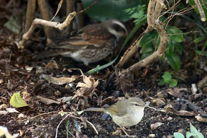 写真上に居るのはツグミです。ツグミがアカハラと闘い、いつも勝っていること