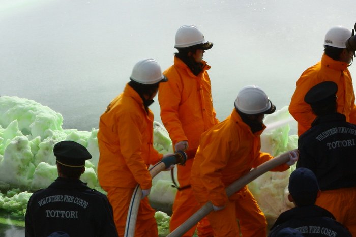 積雪があり、その上強風の中での出初め式でした。