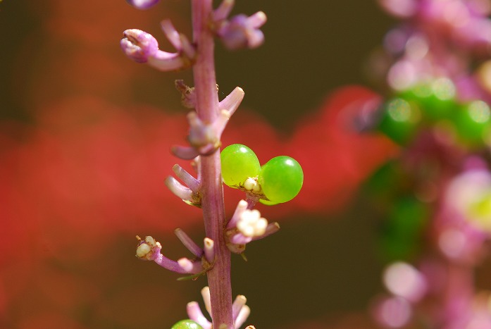 ヤブランの実です。ほぼ枯れ落ちているのに、この実はまだ透明感を維持し