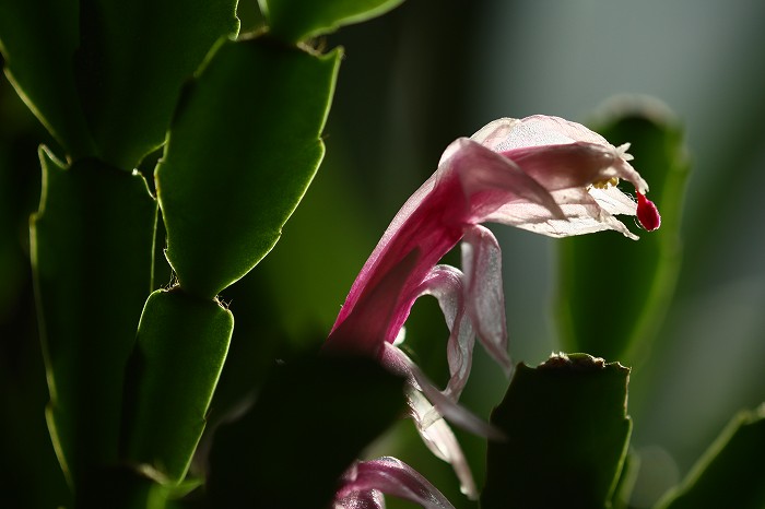 2009年 庭 007 戻る 撮影(02/14) カニバサボテンの一種だと思います。 庭に花が無いですから、廊下の鉢に咲いている花から始めることにしたのです が、どことなくくたびれている花で、不気味ささえ感じる写真になってしまいました。 春になれば、なんとか花らしいものが庭に咲くだろうと思っています。 (Canon) EOS Kiss X2 EF 180mm F3.5L MACRO USM