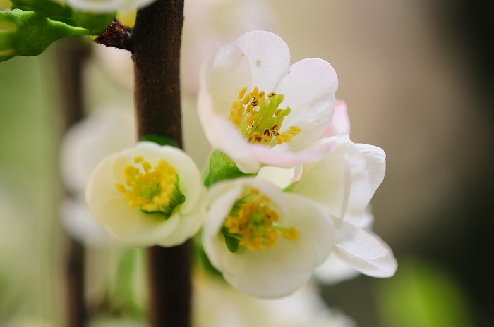2009年 庭 023 戻る 撮影(03/30) 連日冬型の気圧配置が続いていて、気温が低く、雨やみぞれの日も多く、花 たちは動きづらくて大変だと思いますが、私にとってはおかげさまで、花びらの 透明感が長持ちしており、花撮りの勉強が出来ます。 ボケの花です。 (Nikon) D90 (Tamron) SP AF 180mm F/3.5 Di LD [IF] MACRO 1:1