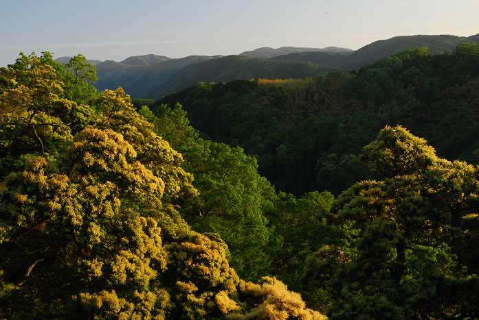 2009年 庭 055 戻る 撮影(05/15) 鳥取市青谷町の日没前の風景です。今は山々が美しい季節です。考えてみれ ば一ヶ月に一枚でもいいですから、このHPに青谷町の風景写真を載せる、という のも有意義だと思うのですが、私にはとてもそのような余裕がありません。 (NIKON) D80 (NIKON) AF-S DX NIKKOR 16-85mm F3.5-5.6G ED VR