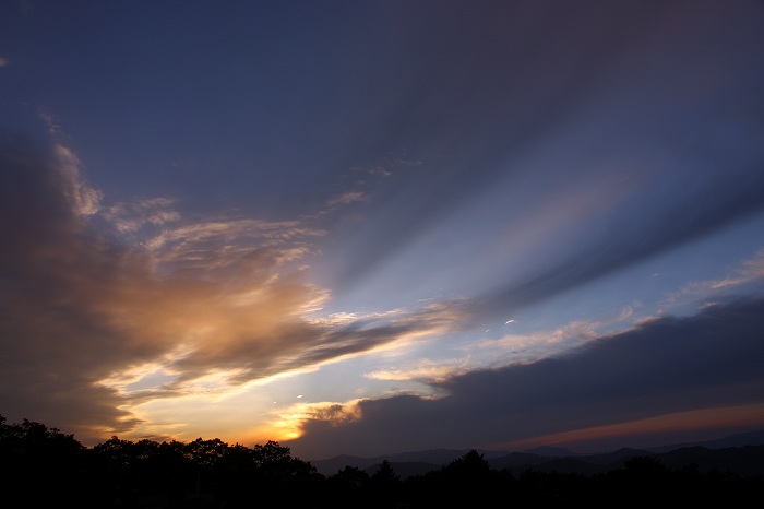 2009年 庭 105 戻る 撮影(10/23) 紅葉を観に行った帰りの夕暮れ時の模様です。 右下の夕焼けは、肉眼ではもっと美しく感じたのですが、どうもうまく出せませ ん。修行不足です。困ったことです。 (Canon) EOS 40D EF-S15-85mm F3.5-5.6 IS USM