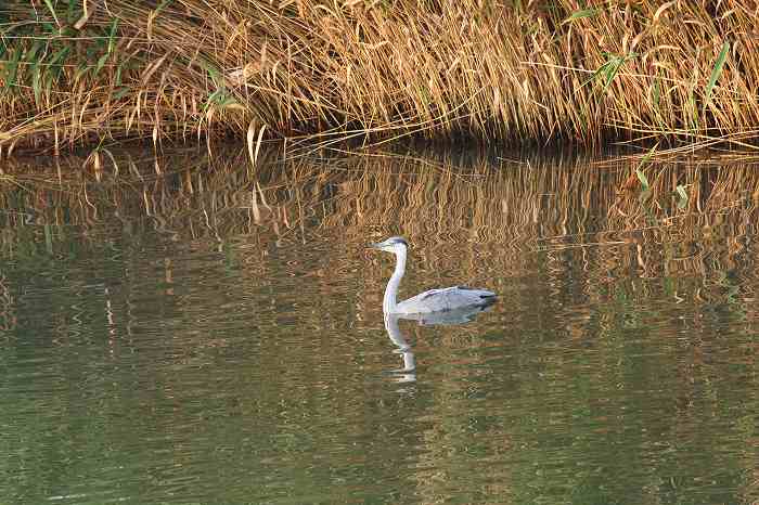 水面で浮遊している姿です。川の流れに身を任せ、気分は白鳥です。この姿勢を観ますと、