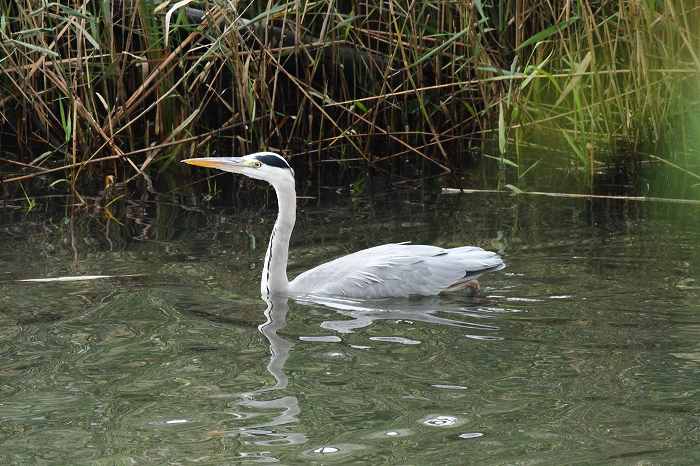 波紋にしても、アオサギは非常に静かに歩きますから、これも泳いでいるとは