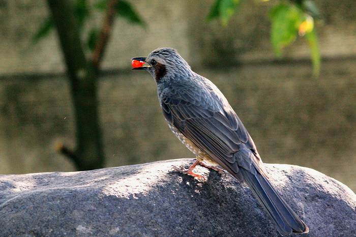 此のヒヨドリは昨年生まれです。殆どの場合は単独行動です。色々な鳴き声を